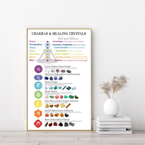 Chakras & Corresponding Healing Crystals Guide Poster Meditation Wall Art Canvas Painting Yoga Print Living Room Home Wall Decor